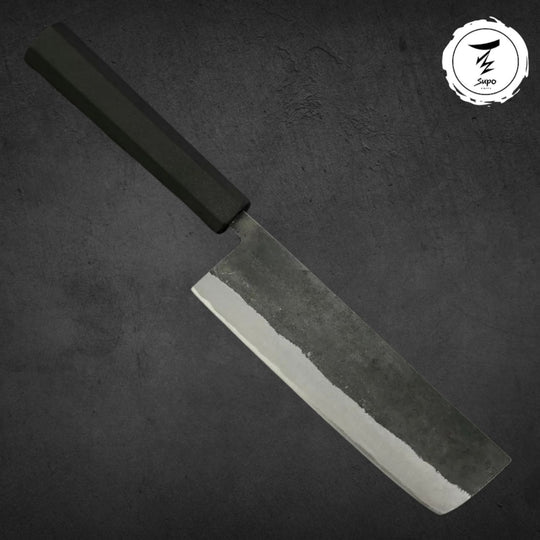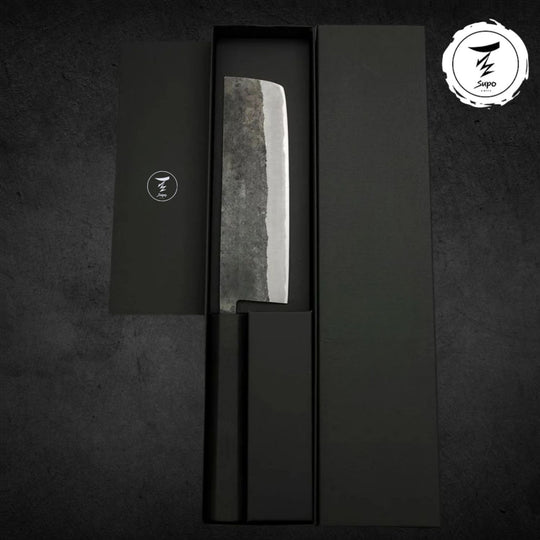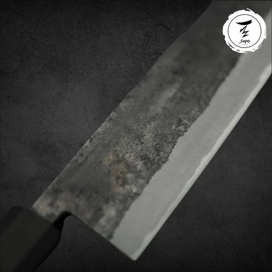 35 reviewsINFORMATION Blade Material: Blue SteelBlade HRC: 61~63Blade Finish: Kurouchi Blade Type: Double-edgedBlade Length: 240mm/10-inchTotal Length: 390mmHandle Length: 135mmHandle: Natural Hardwood HandleSale price $ 299.00Regular price $ 375.00Unit price $ 299.00 / per itemSale price $ 299.00Regular price $ 375.00Unit price $ 299.00 / per item -