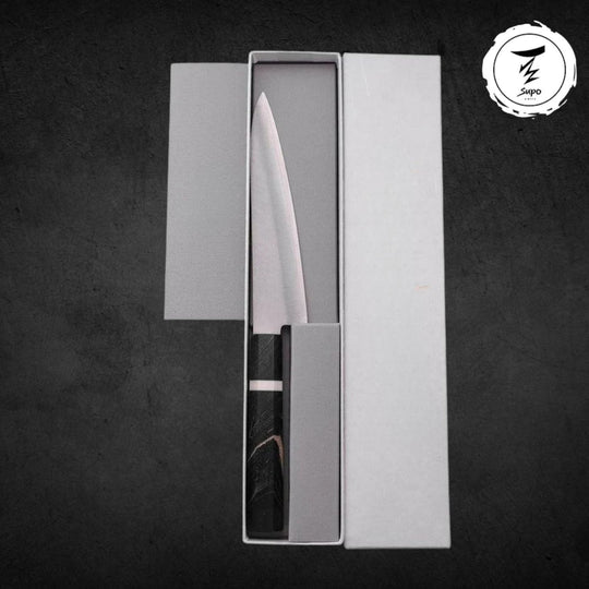No reviewsINFORMATION Blade Material: VG-10 StainlessBlade HRC: 60~61Blade Finish: PolishedBlade Type: Double-edgedBlade Length: 150mmBlade Thickness: 2.0mmTotal Length: 270mmHandle Length: 115mmWeight: 89gHandle: Marbled Maple HandleOrigin: Seki City in Gifu PrefectureRegular price $ 557.00Regular price $ 557.00 -