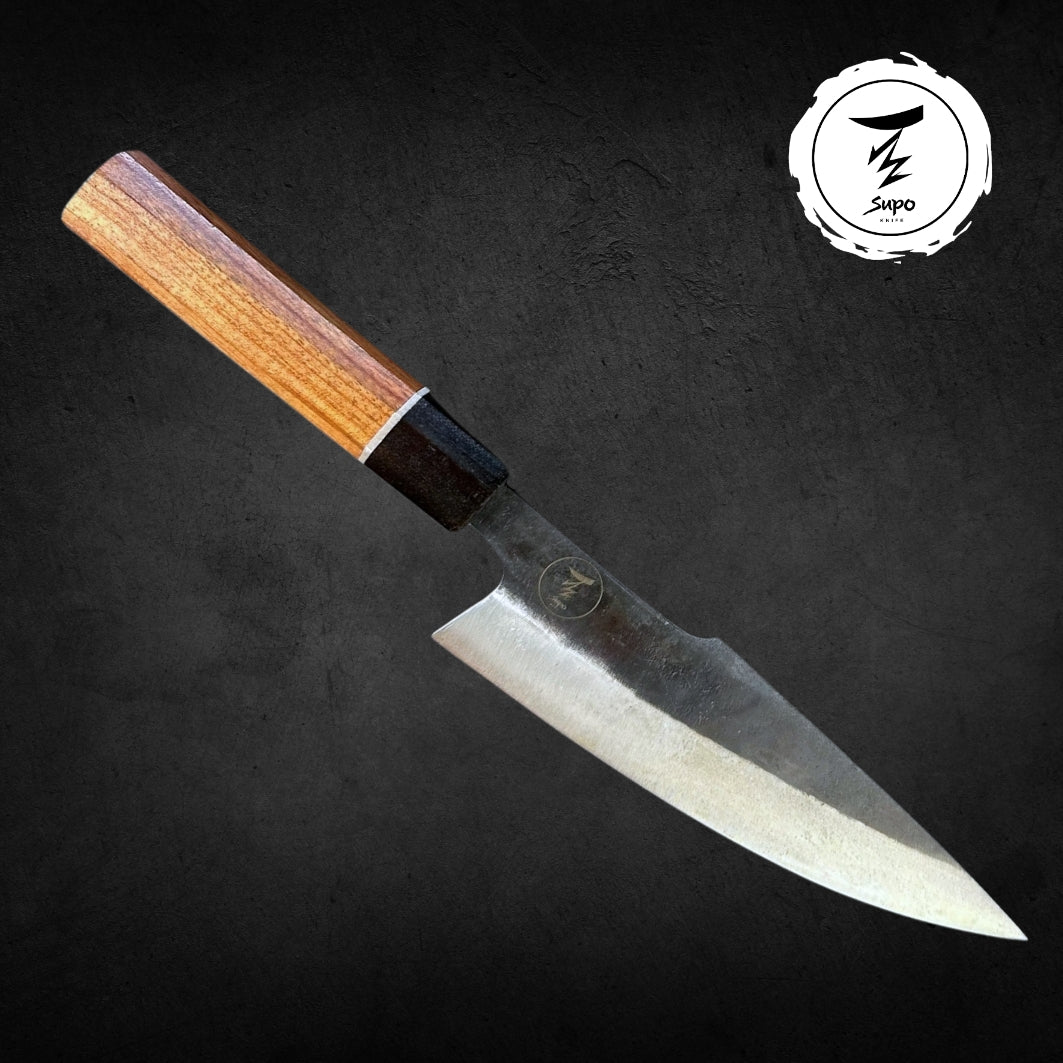Petty/ Paring Knife Blue Steel Kurouchi Natural Wooden Handle
