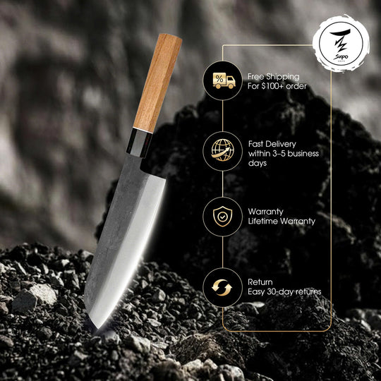 180mm Japanese Deba Left Hand AUS-10 Polished Buffalo Teak Handle