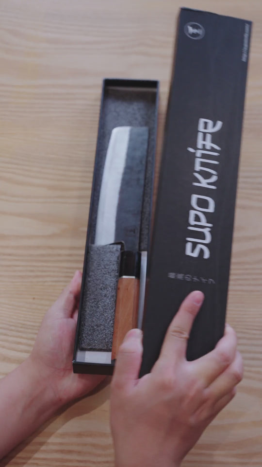 The Nakiri is a dedicated vegetable knife with a flat, rectangular, and thin blade. It effortlessly delivers clean, straight cuts on everything from cabbage to herbs, excelling at shredding and garnishing. This lightweight blade creates a perfect harmony between the cook and the ingredients.
