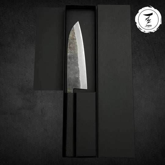 226 reviewsINFORMATION Blade Material: Blue SteelBlade HRC: 61~63Blade Finish: KurouchiBlade Type: Double-edgedBlade Length: 165mm/7-inchTotal Length: 313mmHandle Length: 135mmHandle: Natural Hardwood HandleSale price $ 299.00Regular price $ 365.00Unit price $ 299.00 / per itemSale price $ 299.00Regular price $ 365.00Unit price $ 299.00 / per item -